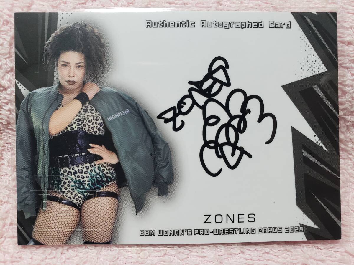 2025年にベースボールマガジン社(BBM社)より発売された女子プロレスカードに封入されておりましたZONES選手の97枚限定直筆カードになります。