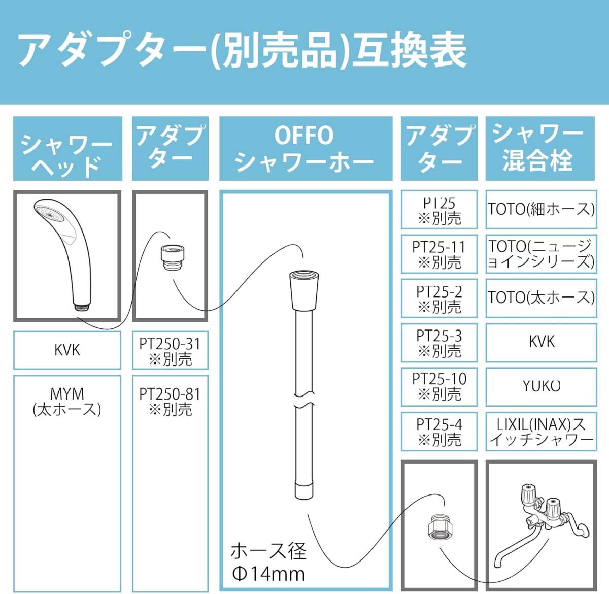 • [アダプター必要シャワーヘッドメーカー] KVK,MYM,ガスターのシャワーヘッドにそのまま取付できないので、アダプターを使えば取付できます。本品はアダプターは付属していないため、別途アダプターをご購入ください。