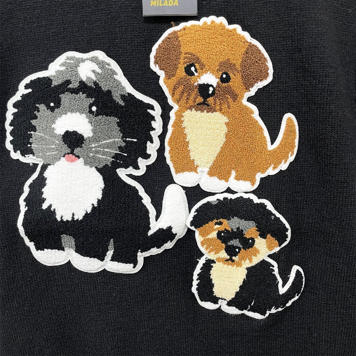 定価5万★christian milada・ミラノ発・セーター★ウール混 防寒 保温 ソフト 可愛い 犬柄 サガラ刺繍 レジャー ニット 通勤通学 XL/50サイズ