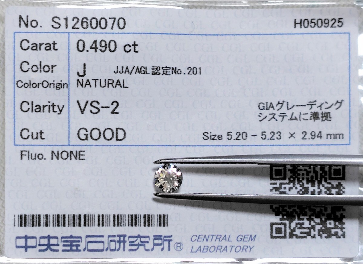 【12/13★安値〜】天然ダイヤモンド ルース 0.490ct J VS2 鑑別 CGL│B2964vb【0.4ct】 ダイヤ diamond