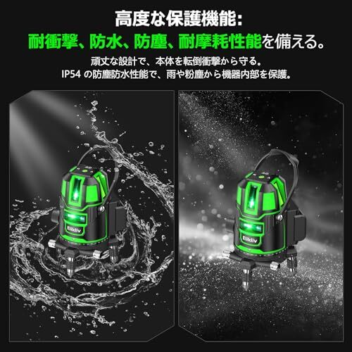 Elikliv レーザー墨出し器 レーザー 水平器 レーザー レベル グリーン 5ライン 4方向大矩照射 360°微調整 大容量バ