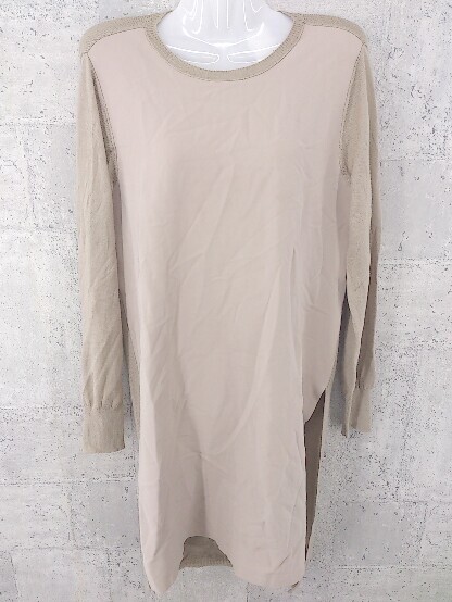 ◇ LAUTREAMONT ロートレアモン サイドスリット 切替 ニット 長袖 膝丈 ワンピース サイズ40 ブラウン レディース