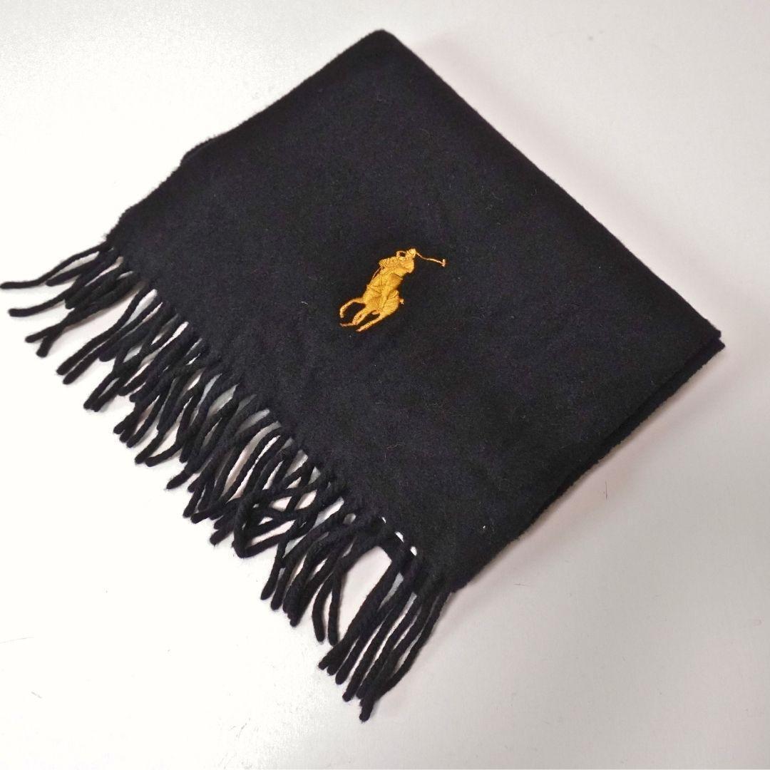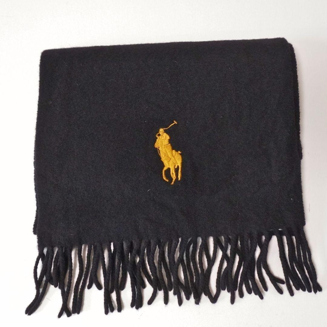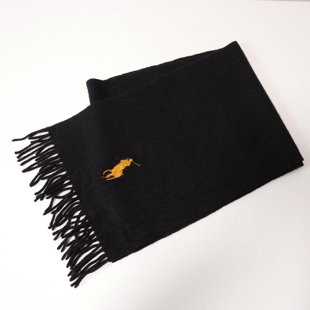 ポロラルフローレン ビッグポニー ウール100% ブラック マフラー