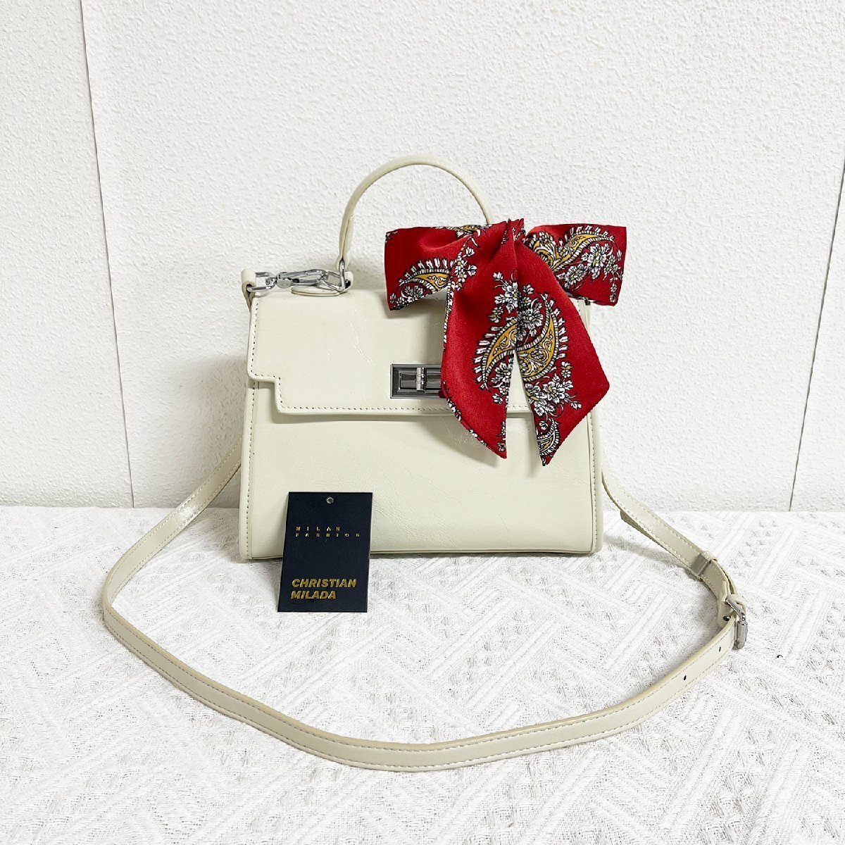 高級 EU製 定価12万★christian milada・ミラノ発・ ハンドバッグ ★本革 レザー 柔らか 光沢感 底鋲付き ショルダーバッグ 鞄 斜めがけ OL