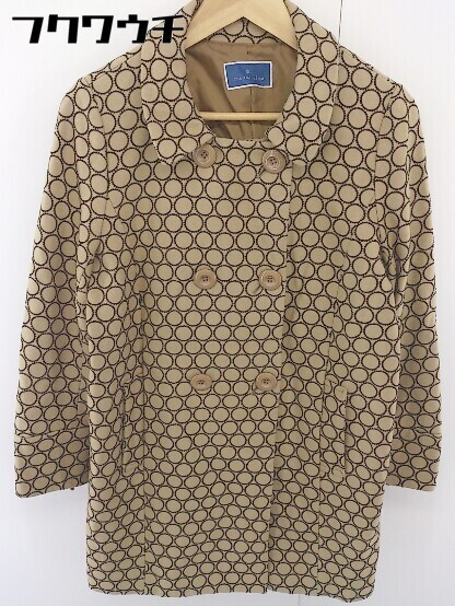 ■ THE EMPORIUM ジ エンポリアム 総柄 長袖 コート サイズ L ベージュ ブラック レディース