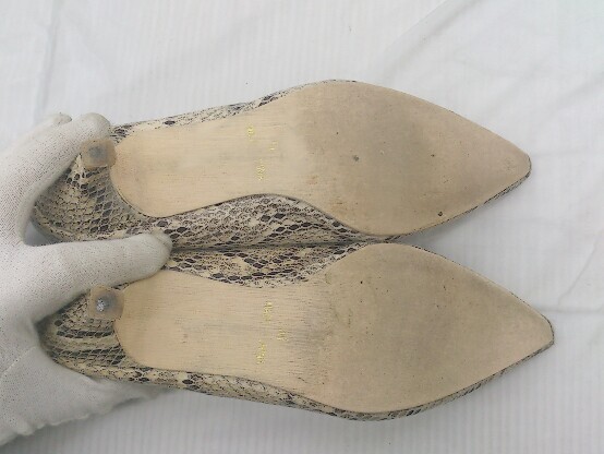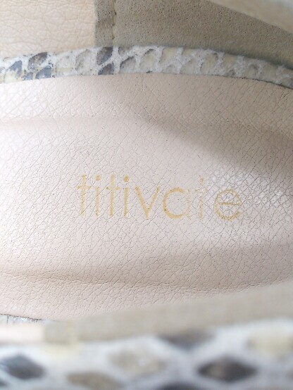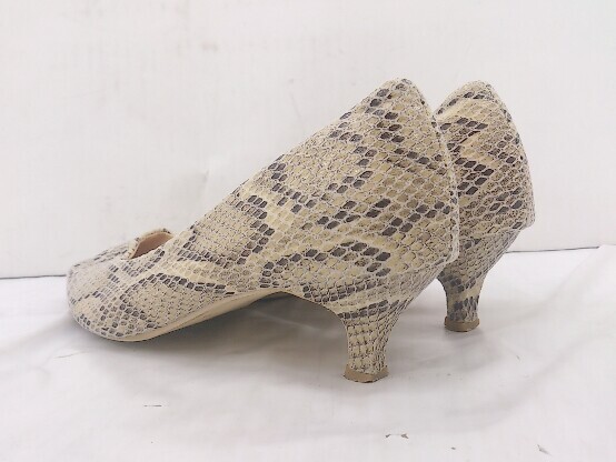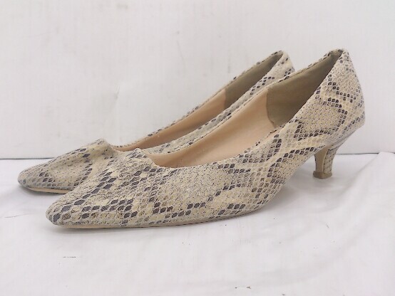 ◇ titivate パイソン柄 ポインテッドトゥ ローヒール パンプス サイズM ベージュ ダークブラウン系 レディース E