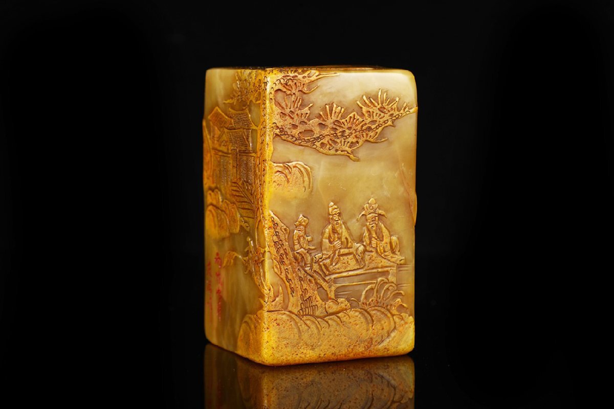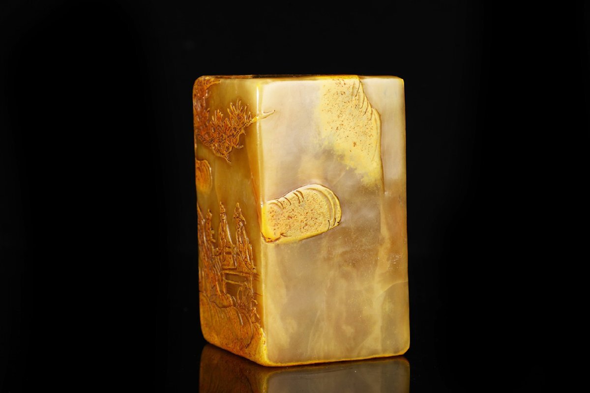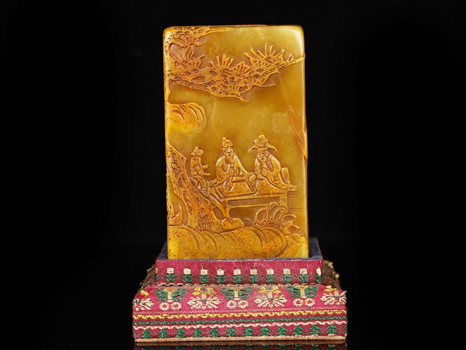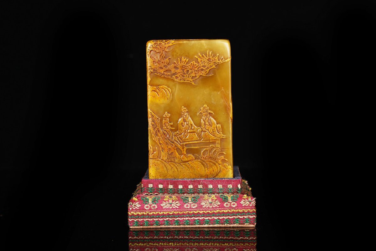 【安】清時代 友清銘 寿山田黄石彫 人物故事紋素章 印材 共箱 極細工 古置物 古擺件 中国古美術 時代物 305 サイズ(約寸) |
