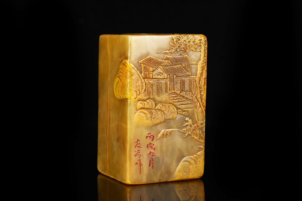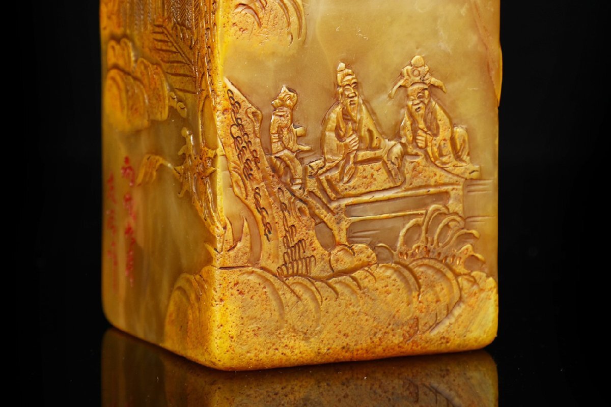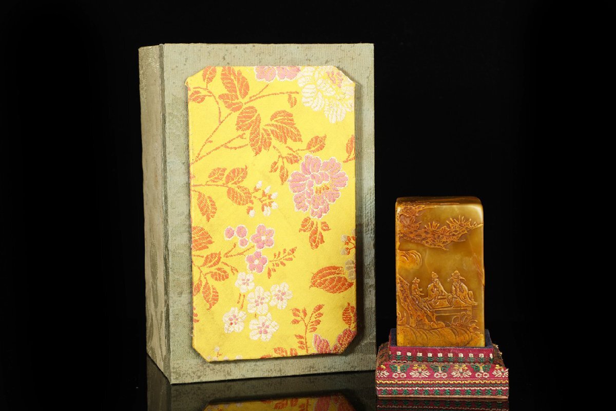 【安】清時代 友清銘 寿山田黄石彫 人物故事紋素章 印材 共箱 極細工 古置物 古擺件 中国古美術 時代物 305 サイズ(約寸) |