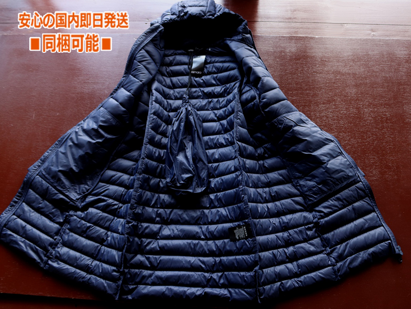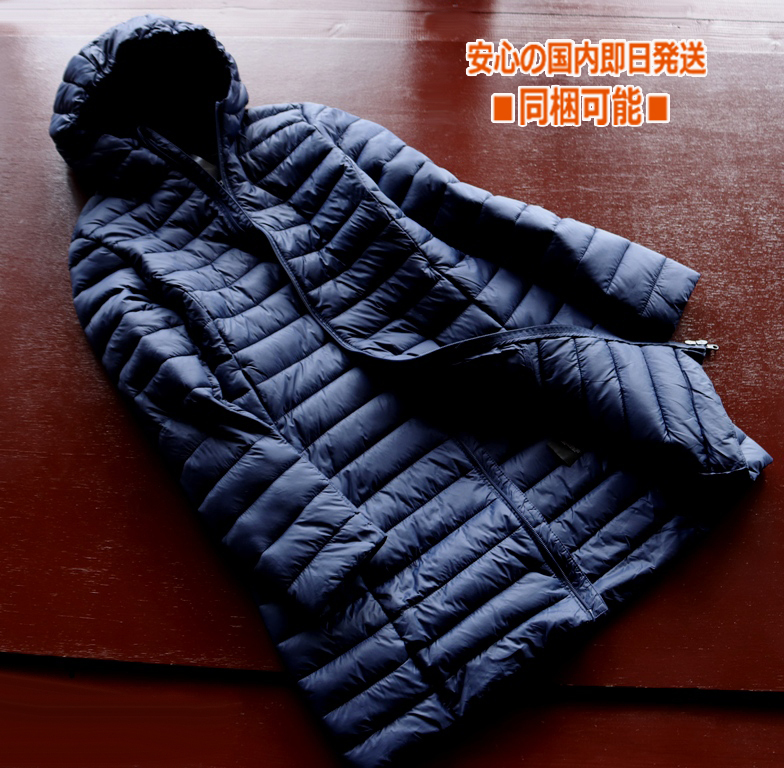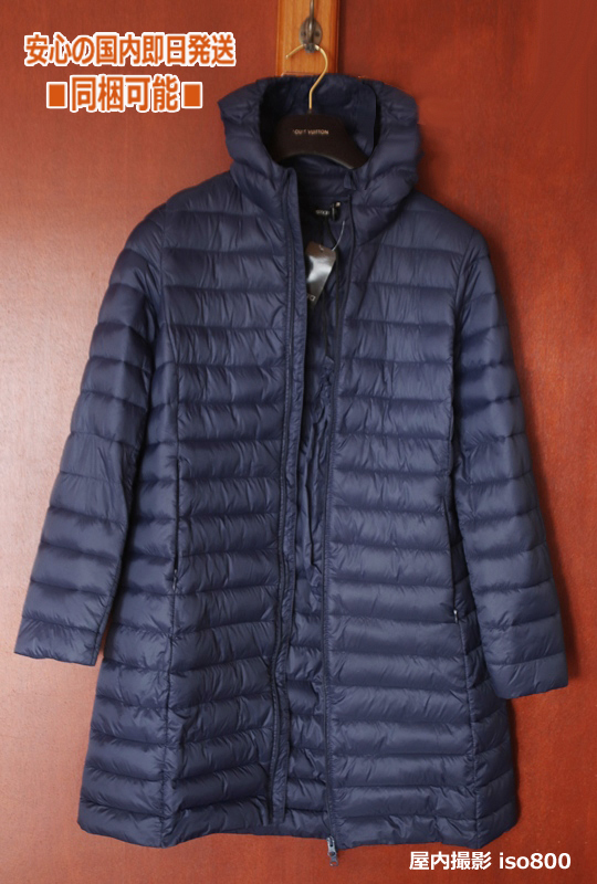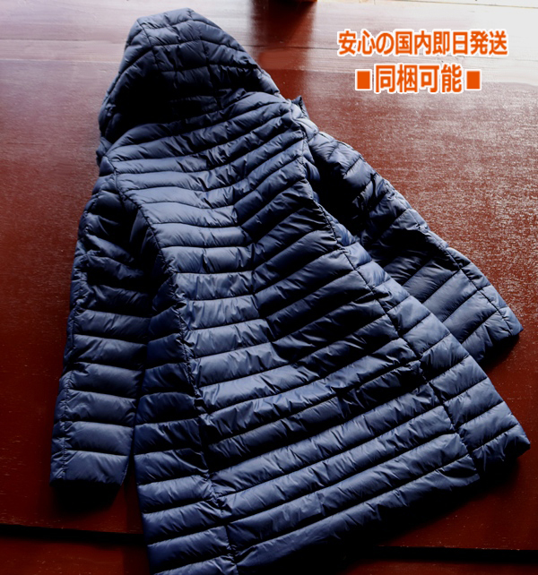 新品■ドイツesmara42 紺 超軽量 中綿 コート XL ネイビー◆レディース フード フェイク-ダウン ロング コート 高品質 軽量 シンプル