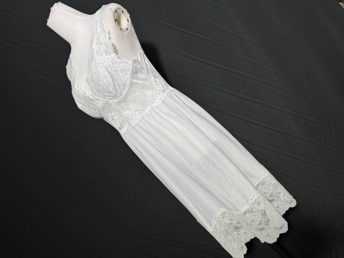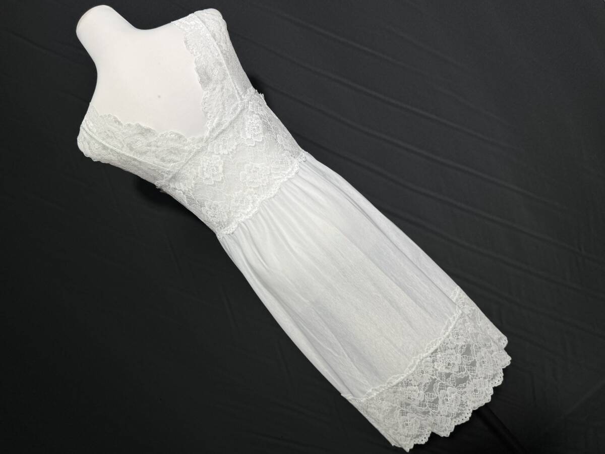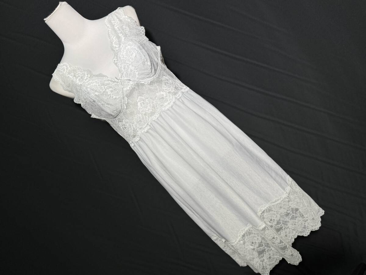 ■サイズ : B100-108 スリップ丈95 ■素 材 : ポリエステル66% 綿34% (レース)ナイロン レーヨン ポリウレタン ■お 色 : オフホワイト系 (光沢) (光の加減やPC環境により実物と多少色が異なる場合があります) ■状 態 : USED ※ホームクリーニング済み | ||