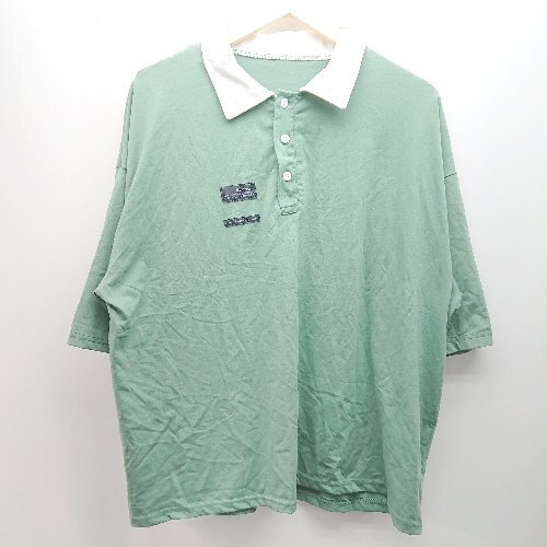 ◇ ノーブランド ボタン ワッペン シンプル オシャレ 薄手 半袖 ポロシャツ 表記なし グリーン系 レディース E