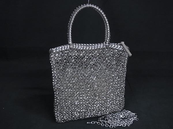 1円 ■新品同様■ ANTEPRIMA アンテプリマ PVCワイヤー チェーン 2WAY ハンドバッグ ショルダー レディース シルバー系 FN8909