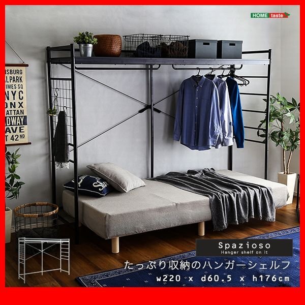 デットスペースになりやすいベッド上の空間を有効活用できるハンガーシェルフ! 邪魔になりにくく、かつ使いやすいを実現しました。 天板耐荷重50㎏で重たいものでも安心しておいて頂けます。 お持ちのベッドがシステムベッドに早変わりします。 便利なサイドメッシュ付きで小物もかけられます。 |