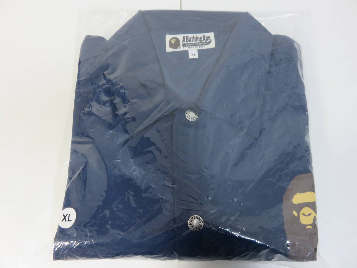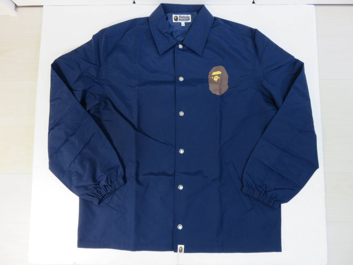 ☆未使用☆A Bathing Ape アベイシングエイプ ナイロンコーチジャケット ネイビー 紺 XL 裏原系 猿プリント 長期保管品