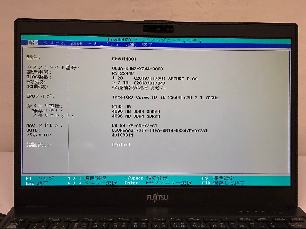 ジャンク/ FUJITSU FMVU14001 LIFEBOOK U938/S Intel Core i5-8350U メモリ8.19GB ストレージ無し 【K25219】