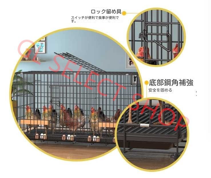 実用品★鶏用ケージ飼育ケージ ためのトレイと卵トレイ付き 4-6鶏 大きな鶏小屋鶏小屋家禽ケージ アウトドア家庭用飼育 100x60x70 cm