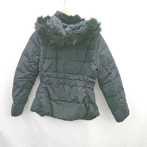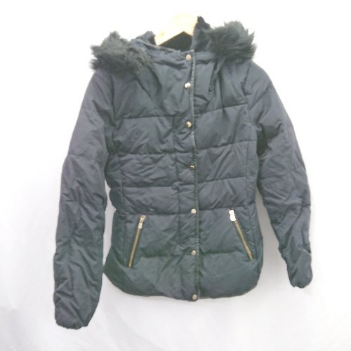 ◇ ⊇ ZARA ZARA basic フード ファー付 キレイ系 高級感 長袖 ダウンジャケット サイズL ネイビー系 レディース E