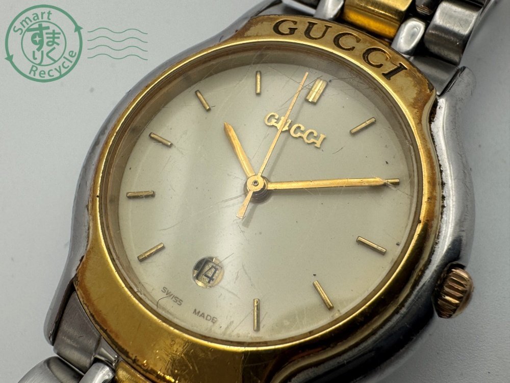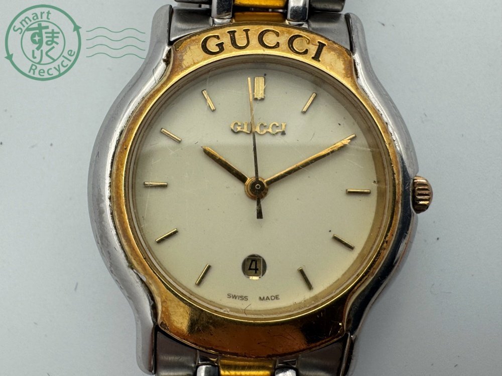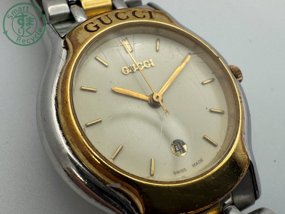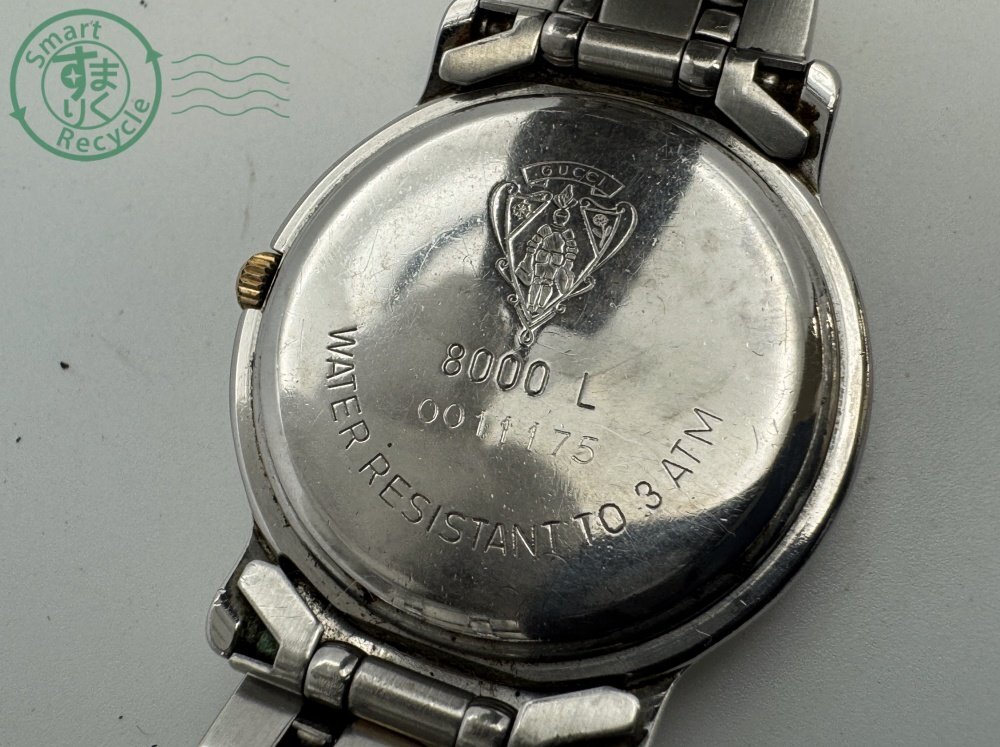 ● GUCCI グッチ 8000L クォーツ 三針 デイト ラウンド アナログ コンビカラー 風防傷強 ベルト留め具破損 腕時計 中古 不動 | |||