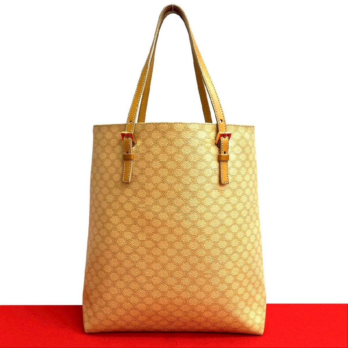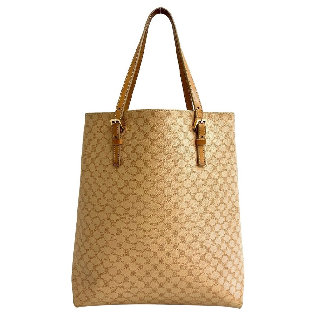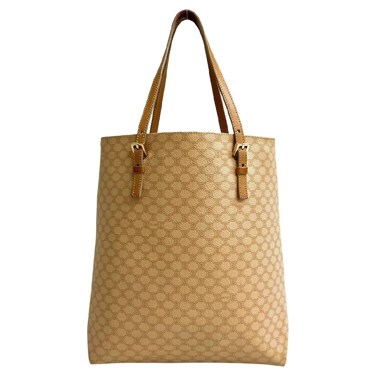 極 美品 希少品 CELINE セリーヌ ヴィンテージ マカダム ブラゾン ロゴ 柄 レザー 本革 ハンドバッグ トートバッグ ベージュ 18926