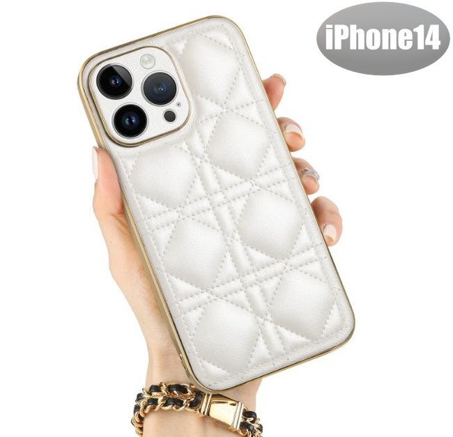iPhone14 ケース ホワイト キルティング おしゃれ スマホケース スマホカバー 耐衝撃 衝撃吸収【n320】