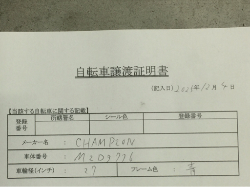 | 1円 メーカー不明 クロスバイク CHAMPION No.2 フレーム 27インチ Panaracer 27×1 1/4 タイヤ ブルー系 直接引渡のみ |