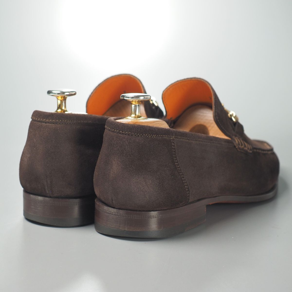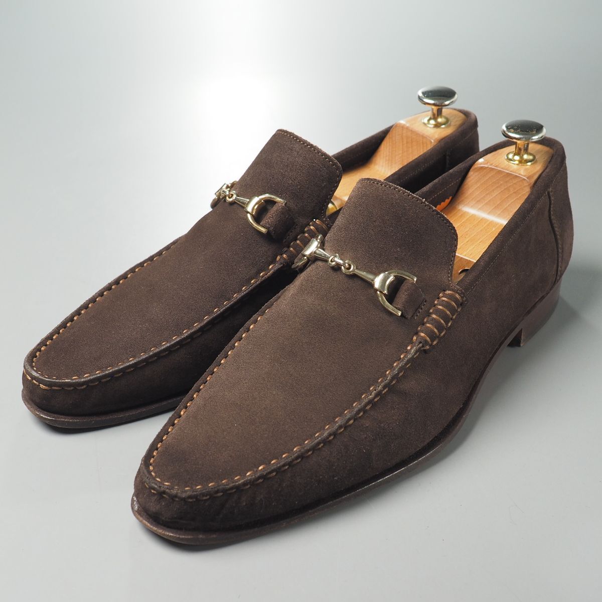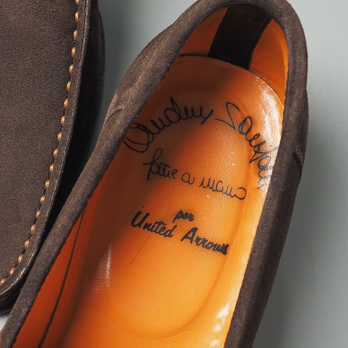 イタリア靴の中でも歴史の浅いシューメーカーながら、その評価は100年を超える老舗にも等しいとさえ言われる名門「Santoni/サントーニ」の一足です。 滑らかな茶のスウェードレザーをアッパーに用いたユナイテッドアローズ別注のビットローファー。 底付けにはマッケイ製法を採用、返りが柔軟で歩きやすく、暖かみのある素材の表情が肌寒いシーズンに好相性です。 製法:マッケイ アウトソール:レザー トップリフト:レザー×ラバー ライニング:レザー 生産:イタリア製 ※撮影用のシューキーパーは付属致しません。 ※本物の商品ですのでご安心の上オークションをお楽しみ下さい。 ※タイトル頭の英数字は弊社の管理番号です。 ※ほかにも多数の商品を出品しています。 ※同梱に関しましては「まとめて取引」でのみ対応可能です、その他の方法での同梱対応は出来かねます。 (※商品の特性上、同梱対応出来ない商品もございますので予めご了承下さい。) |