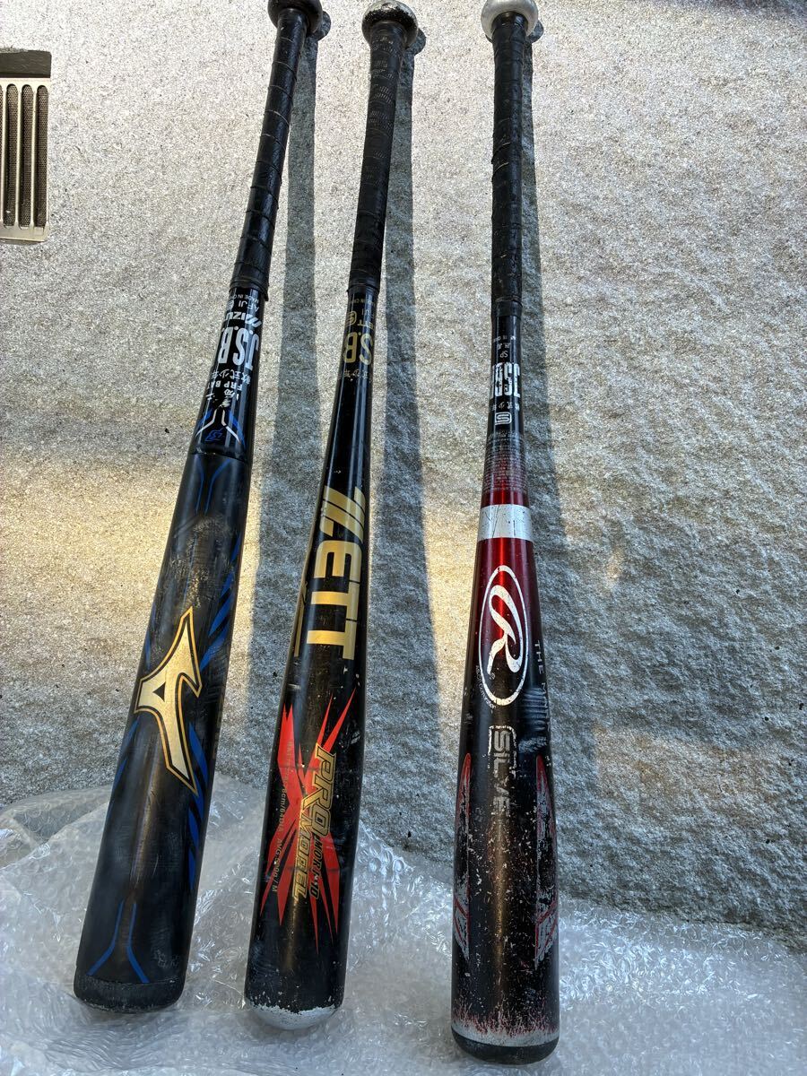 ブランド・メーカー :ミズノ ビヨンドマックスエクスパンド1本、ゼット プロ森モデル1本、ローリングス シルバー?1本、約78cm、500g前後で少年野球始めたての小学校4.5.6年生にピッタリのサイズ!納戸で保管のため状態は良いと思います。ゼットとローリングスについては、グリップ交換が必要かと思われますが、グリップの巻けるあなたにとっては、大チャンス