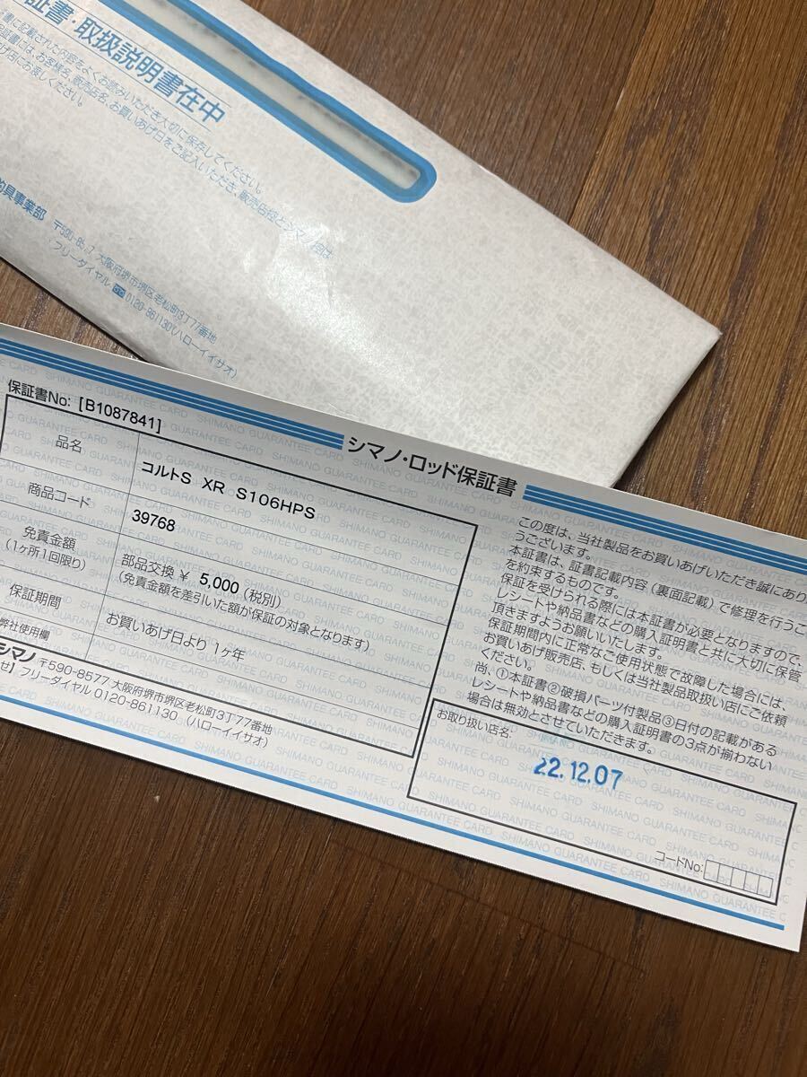 付属品は箱とロッド本体。一応保証書も付けますが期限が切れているので使用できないと思います。