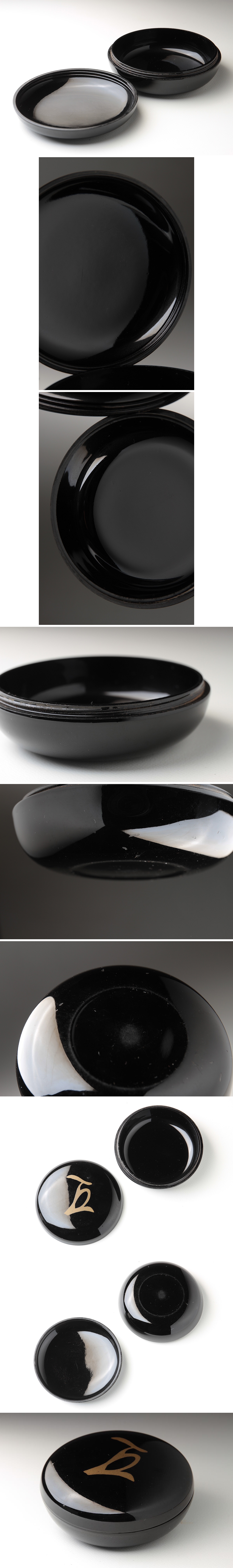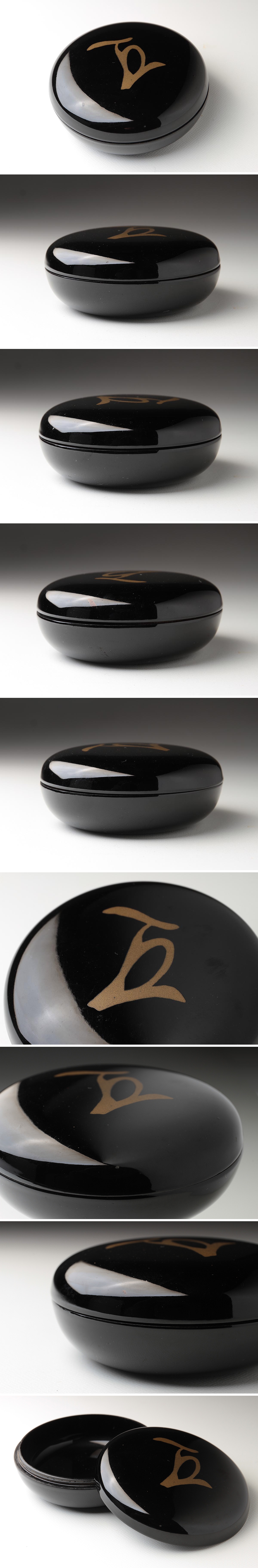 | ◆ 黒塗 梵字図 香合 径7.7cm・梵字蒔絵香合・香盒 茶具 茶器 ◆