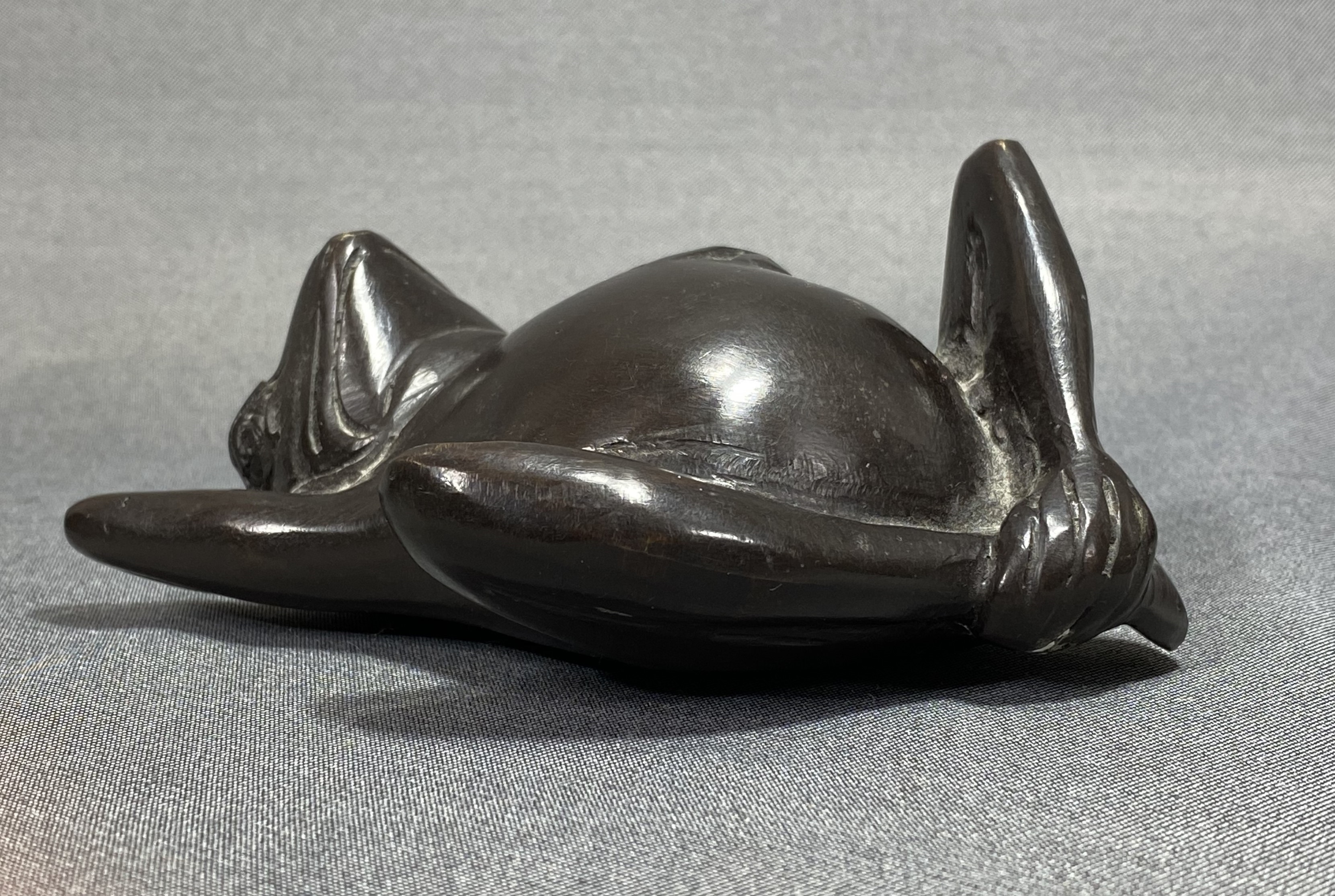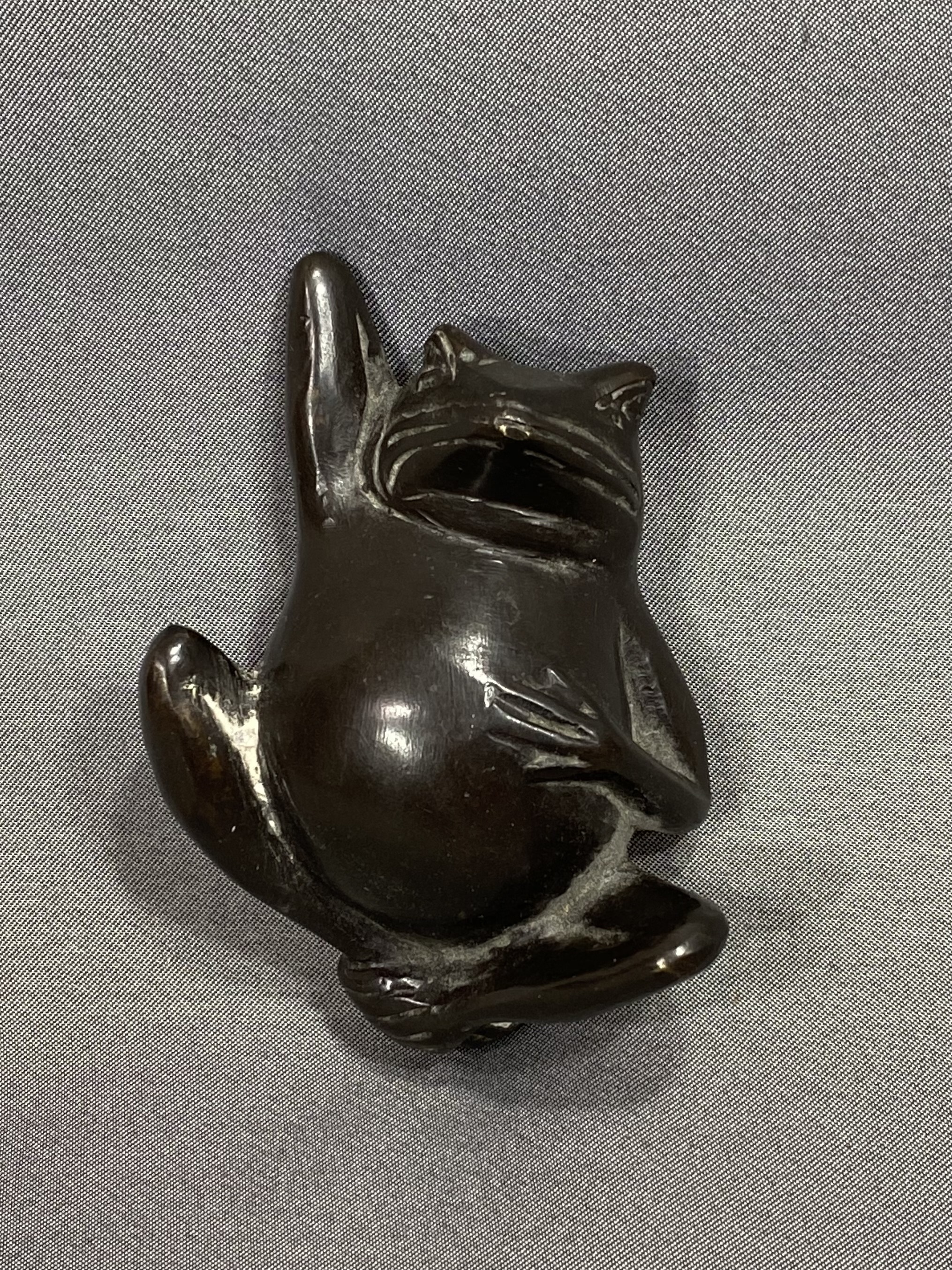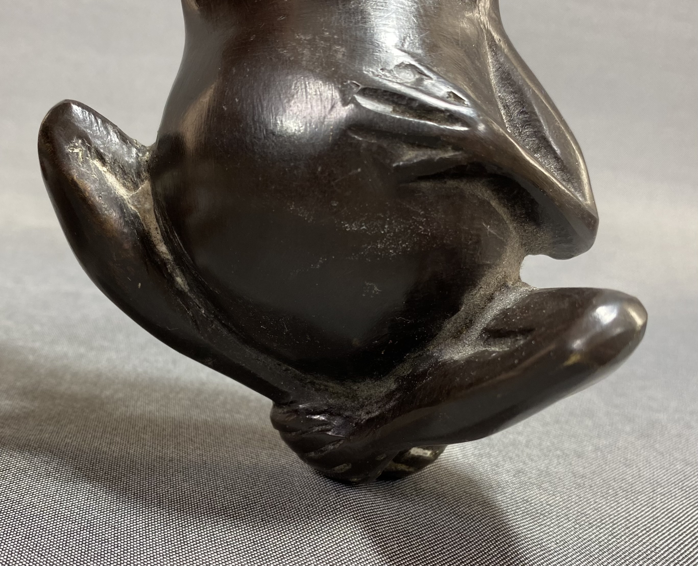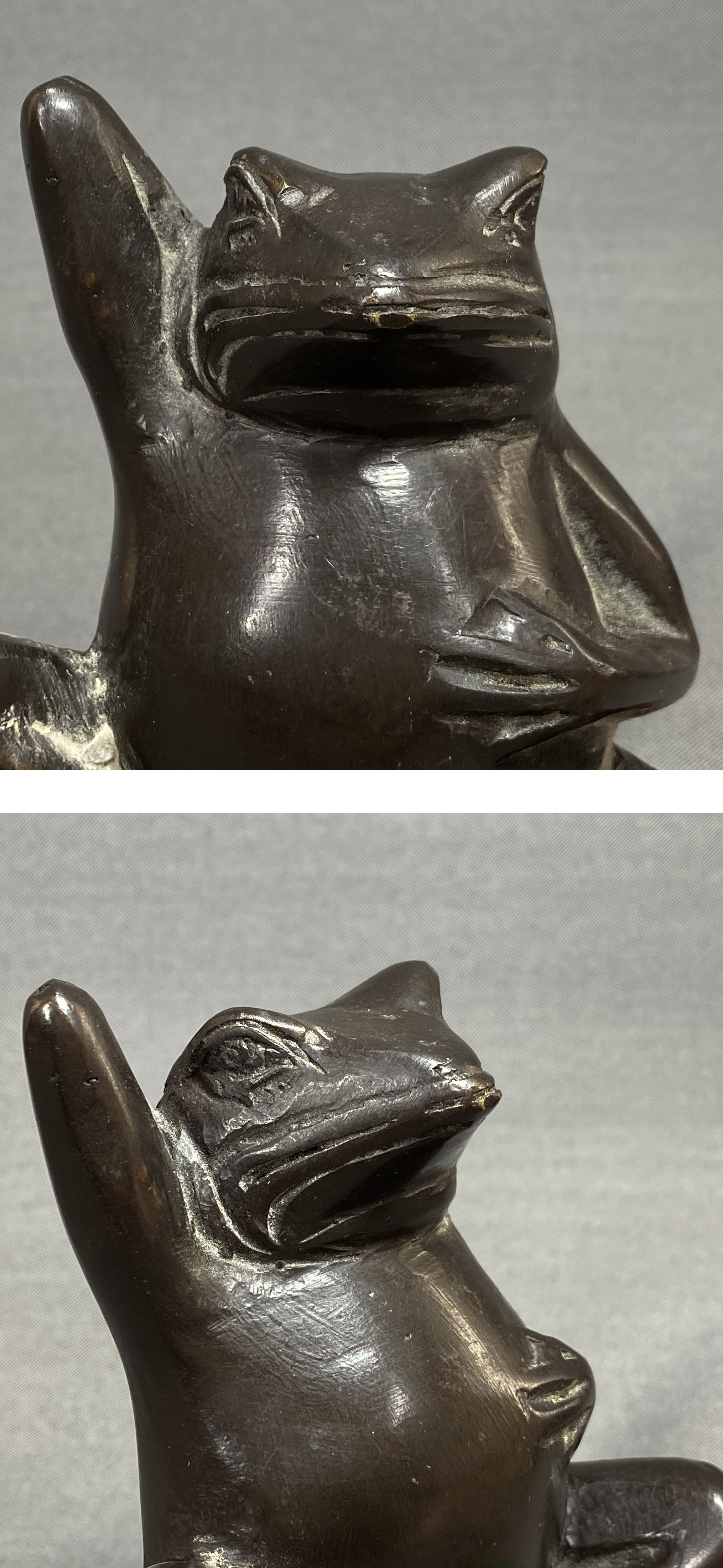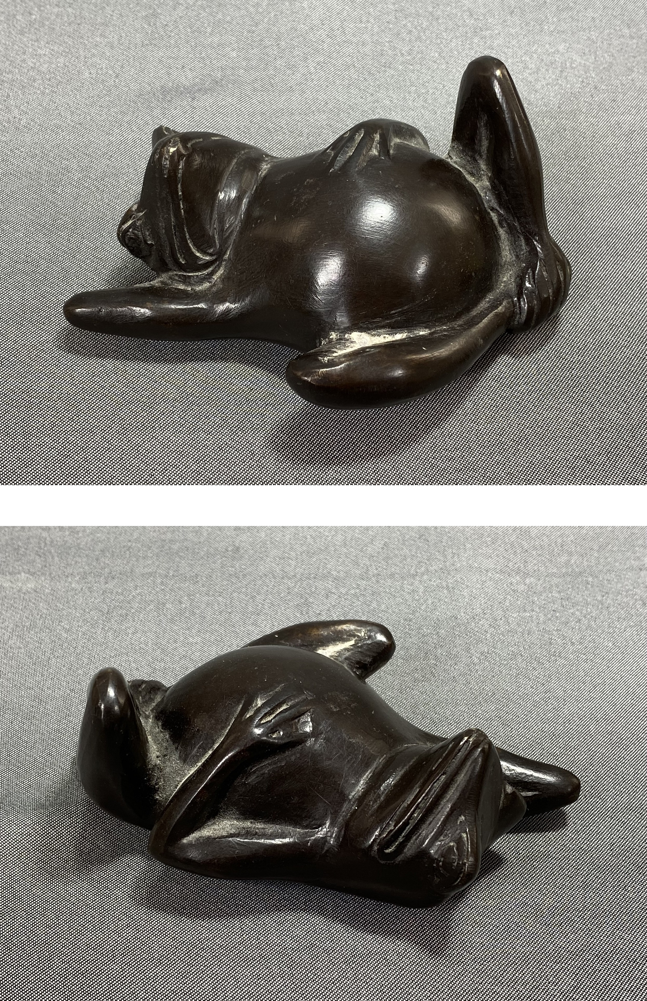 【風車】古銅 臥蛙 文鎮 鎮紙 文房具 書道具▲379g▲書道具 筆記用具 彫刻 置物 アンティーク
