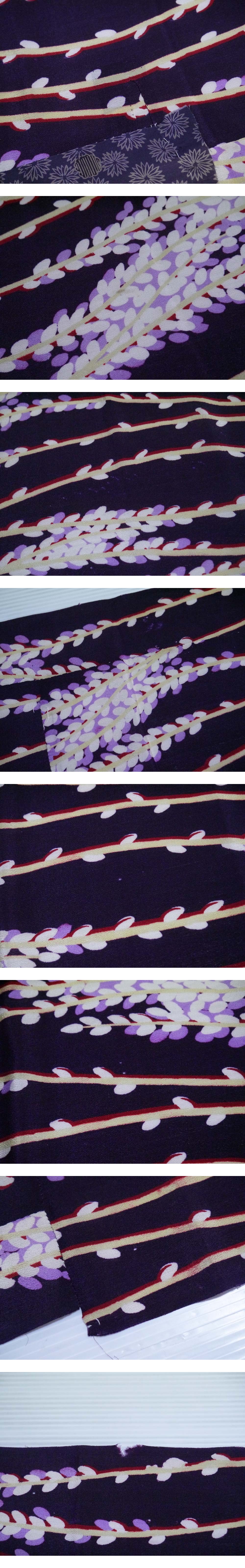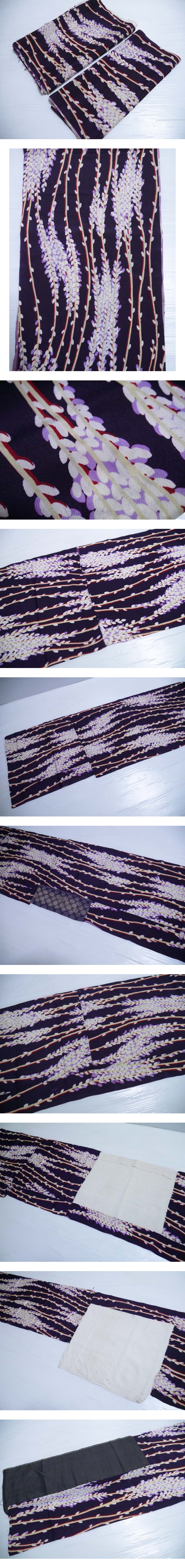 アンティーク 解き反物 ハギレ 正絹 錦紗 紫地 ネコヤナギ柄