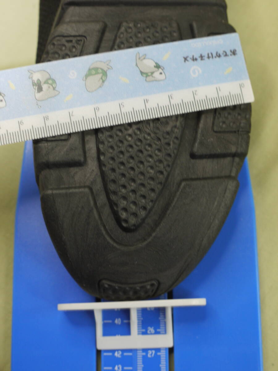ホ)サイズの合わない靴を無理に履くと外反母趾その他思わぬ障害や怪我をしますので、無理に履かないでください