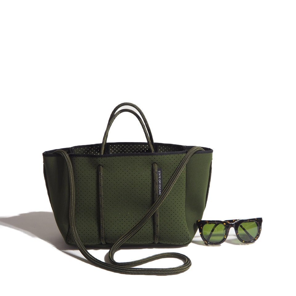 R5283R11 ▼STATE OF ESCAPE ステートオブエスケープ▼ Petie escape tote ネオプレン ショルダー付き ミニ トートバッグ カーキ