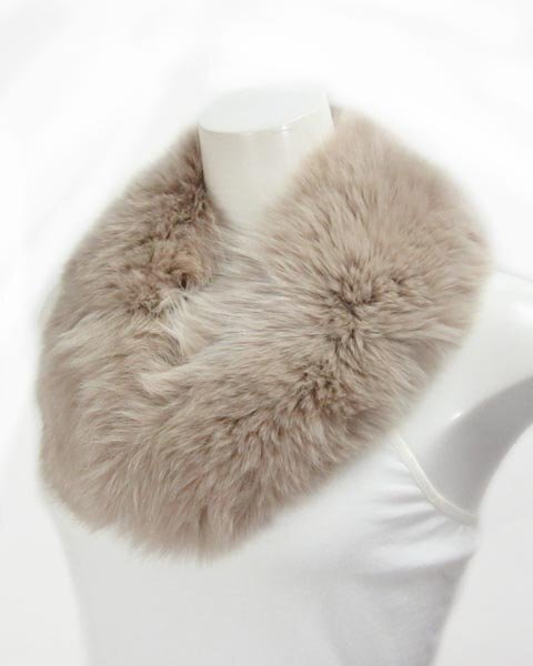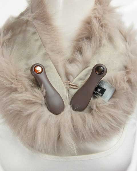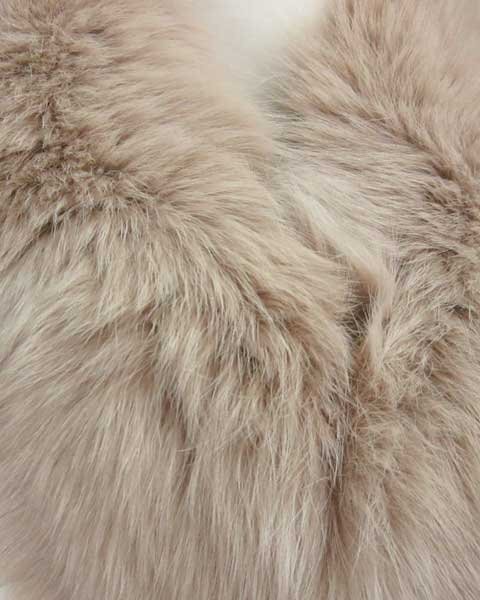 | ふわふわファーのゴージャス感のあるティペット。両サイドにクリップがついているので使いやすい。上品なベージュなので、お洋服のお色を選ばずお使い頂けます。 |