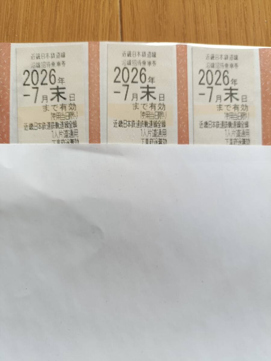 近鉄株主優待沿線招待乗車券 2026年7月末日まで有効【26年7月末日まで】 ◆乗車券使用上のご注意 1.本券は1枚1人片道通用で、途中下車されると前途無効になります。また、折り返してご乗車される場合は、折り返した駅からの前途は無効になります。 2.本券で葛城山ロープウェイにはご乗車できません。 3.他の交通機関への振替輸送の取扱いはできません。 4.自動改札機設置駅では、自動改札機(ICカード専用機を除く。)をご利用ください。 5.磁石、携帯電話、テレビ等に近づけないでください。 6.特急列車をご利用の場合は、別に特急券をお買い求めください。 7.本券は、再発行いたしません。 ※未使用ですが、自宅保管品です。
