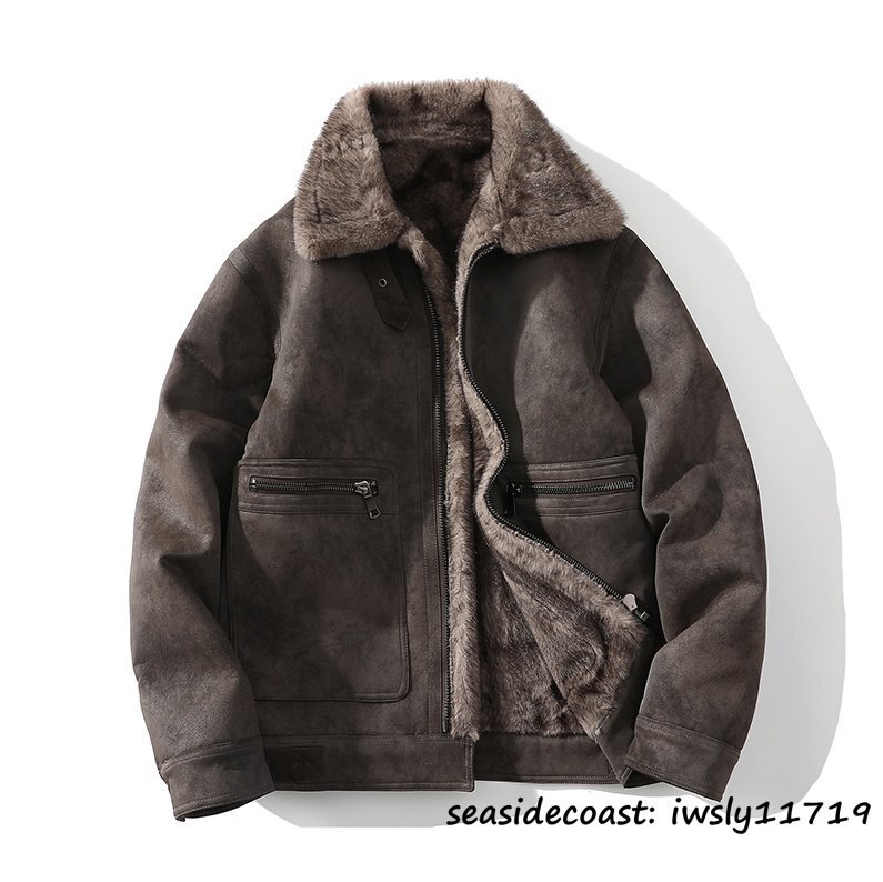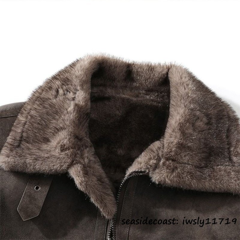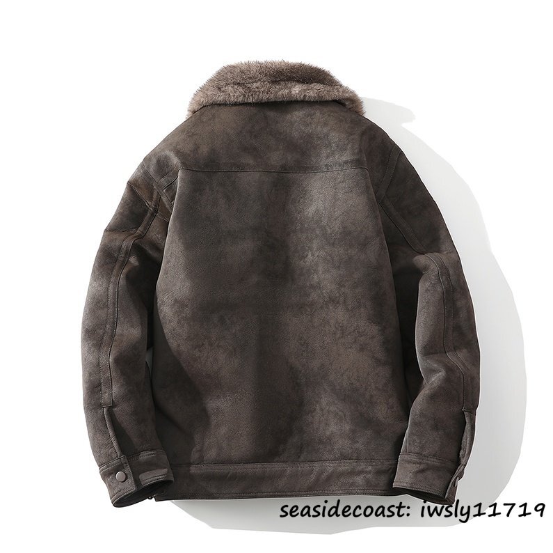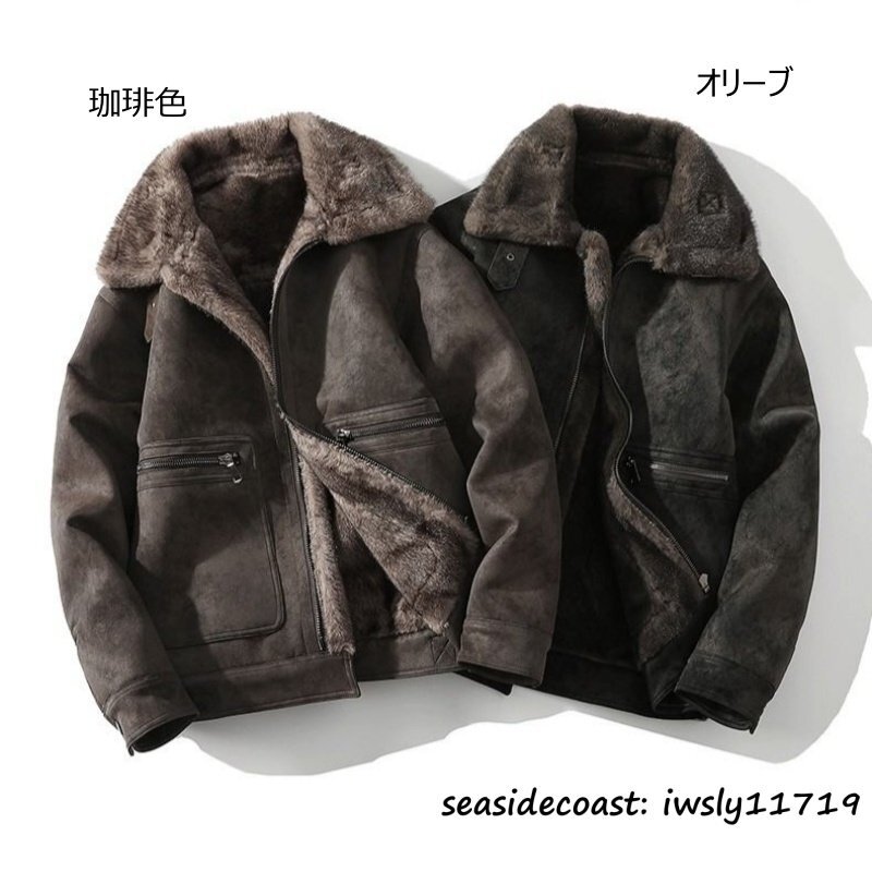 秋冬新品◆ムートンコート メンズ 裏起毛 厚手 防寒 暖かさ ブルゾン 上質 フライトジャケット パーカー アウター ファーコート 珈琲色 4XL