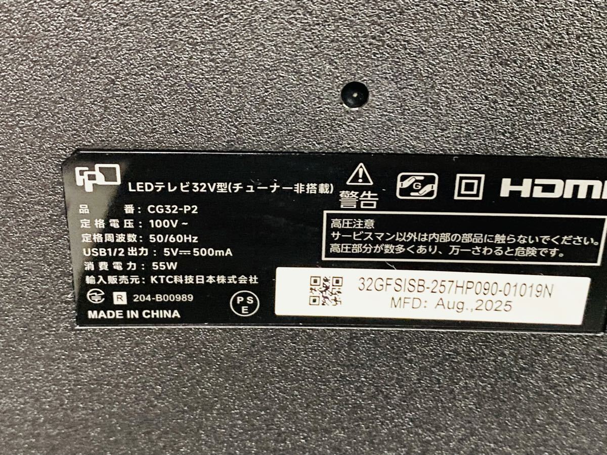 ◇ FPD LEDテレビ チューナーレステレビ 32V型 CG32-P2 2025年製 リモコン、説明書付き 通電確認済みになります。