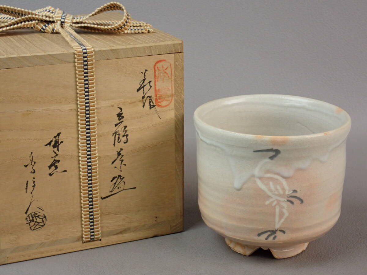 【骨董・茶道具】★金子信彦★★萩立鶴茶碗 gr077ub22