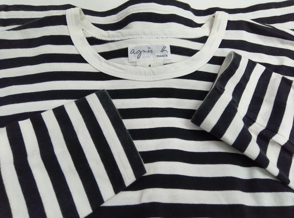 agnes b.☆アニエスベー 細ボーダー コットン 長袖 Tシャツ 1(S)参考価格:14,300円 定番 黒白 カットソー【中古】Y251213008