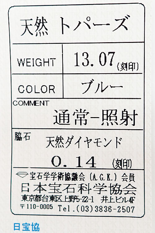 オプションサービス→鑑定書、鑑別書作成(有料)