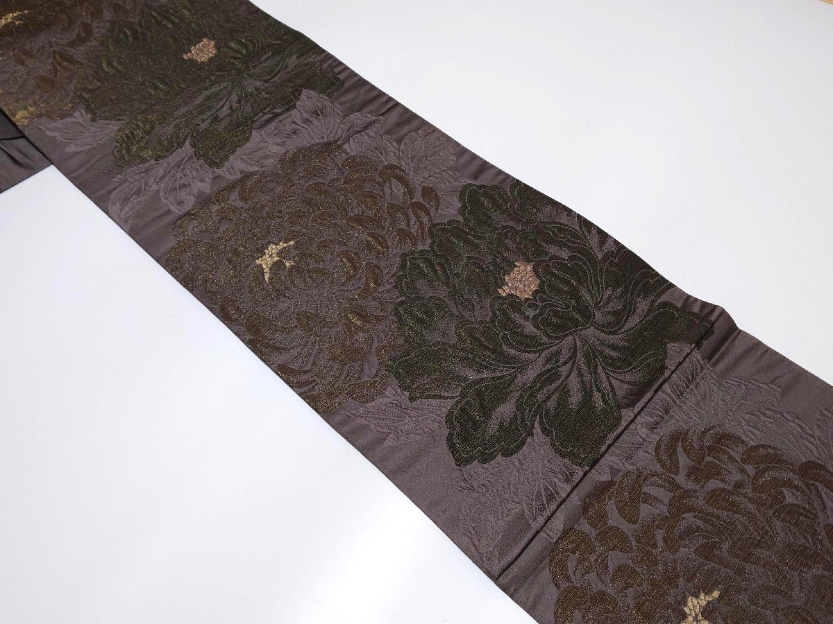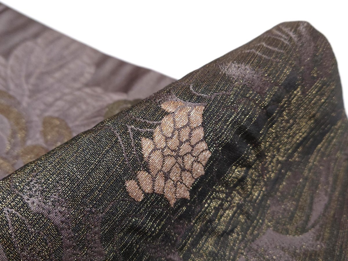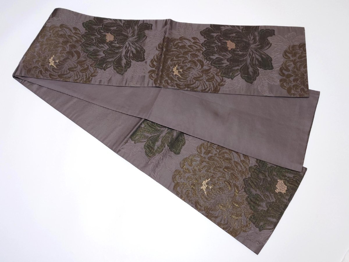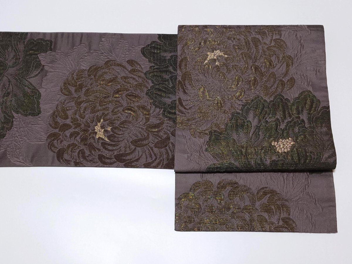 夢工房謹製、菊と牡丹の文様が織り出された袋帯のご紹介です。 落ち着きのある地に、繊細な織りと控えめな輝きが重なり、静かな存在感を放つ一本となっております。 菊と牡丹という古典的な花意匠を基調としながらも、 意匠の構成や織りの表情にはどこか洋風のニュアンスが感じられ、和洋の感性が美しく溶け合ったデザイン。 光の当たり方によって、文様の奥行きや立体感がやわらかく浮かび上がります。 華やかさを抑えたシックな雰囲気のため、訪問着や付下げはもちろん、 洒落感を意識したコーディネートにも取り入れやすく、装い全体を上品にまとめてくれます。 季節を問わず活躍し、帯合わせの幅が広い点も魅力です。 夢工房ならではの丁寧なものづくりが感じられる袋帯。 落ち着きと個性を併せ持つ花文様の帯をお探しの方に、ぜひおすすめしたいお品です。 ※撮影時部屋の照明によって画像の色に若干の差がございます。 色味に差がございますことをご了承のうえご検討下さいませ。 ※個人保管品のため記載のない僅かな難がある場合がございます。 そのような理由でのキャンセルはお受けできませんので、ご了承の上ご検討お願いいたします。 |