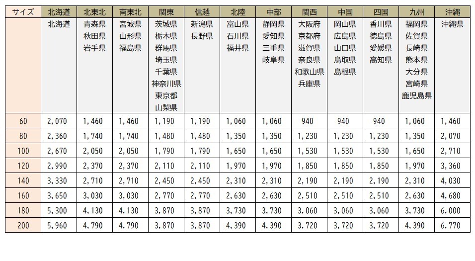 | 纸箱大小(CM) | 打包费(日元) |