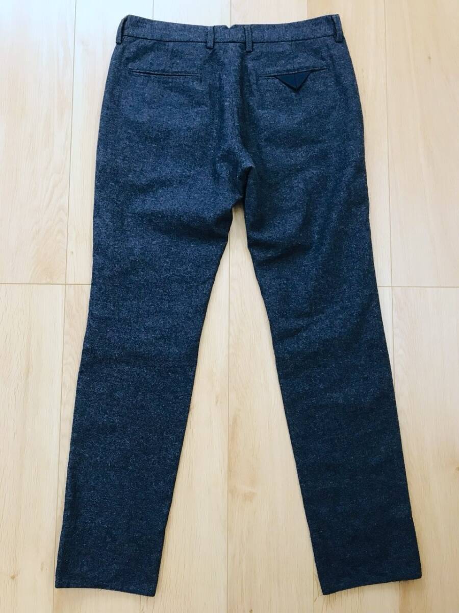 | サイズ | 表記L(実寸/ウエスト:約86cm もも幅:約30cm 裾幅:約18.5cm 股上:約25cm 股下:約81cm)| 色 | ネイビーグレー | 素材 | 表地:ポリエステル63 ウール24 アクリル6 ナイロン3 レーヨン2 綿2% 裏地:ポリエステル100% | コンディション | 7.5 | |