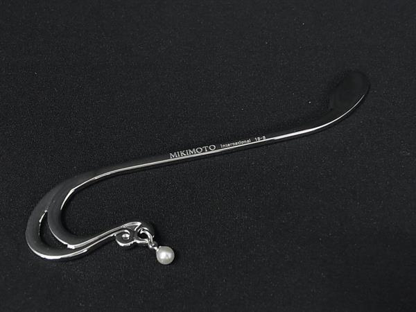 ■新品同様■ MIKIMOTO ミキモト 本真珠 アコヤ真珠 パール 約4mm ブックマーカー 栞 しおり ステーショナリー シルバー系 DK3760