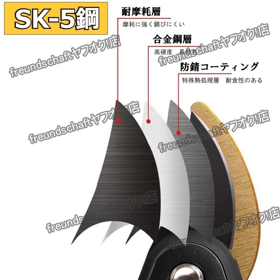 【高い切れ味】:この剪定ばさみは、プロの庭師が推奨する強力且つ安全性の高い園芸鋏です。ガーデニング鋏の刃は、超強力且つ鋭利で、錆び・耐食性のあるSK-5鋼を採用しています。 直径35mmまでの植物や枝を切ることができ、簡単に剪定ができます。