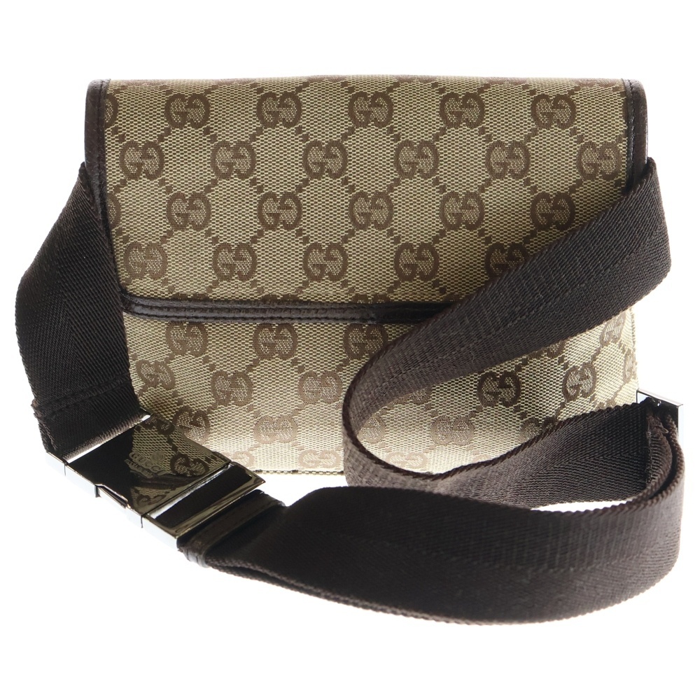 品名GGキャンバス ウエストバッグ ボディバッグ ショルダーバッグ ブラウン×ベージュ キャンバス×レザー 92543 シルバー金具