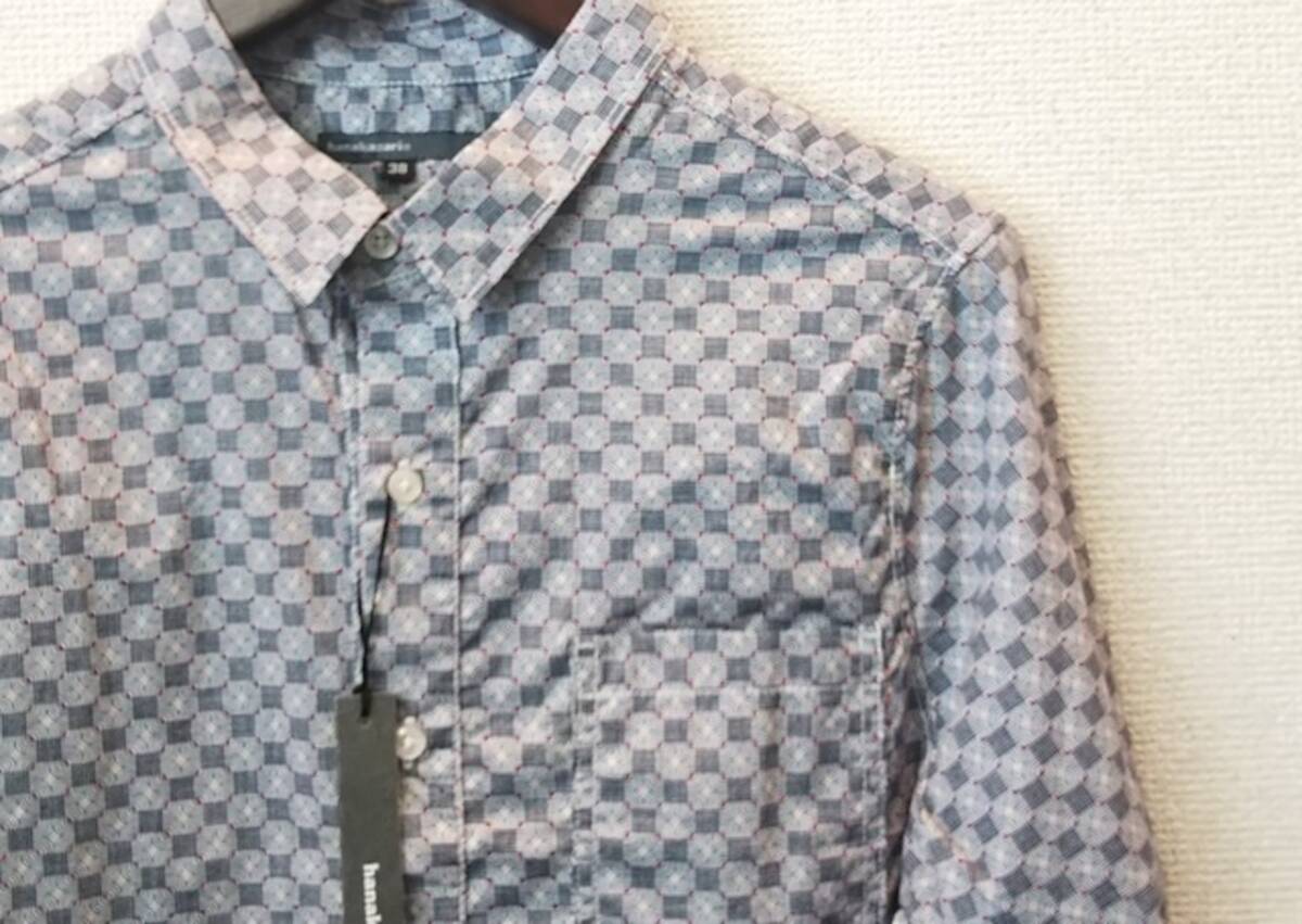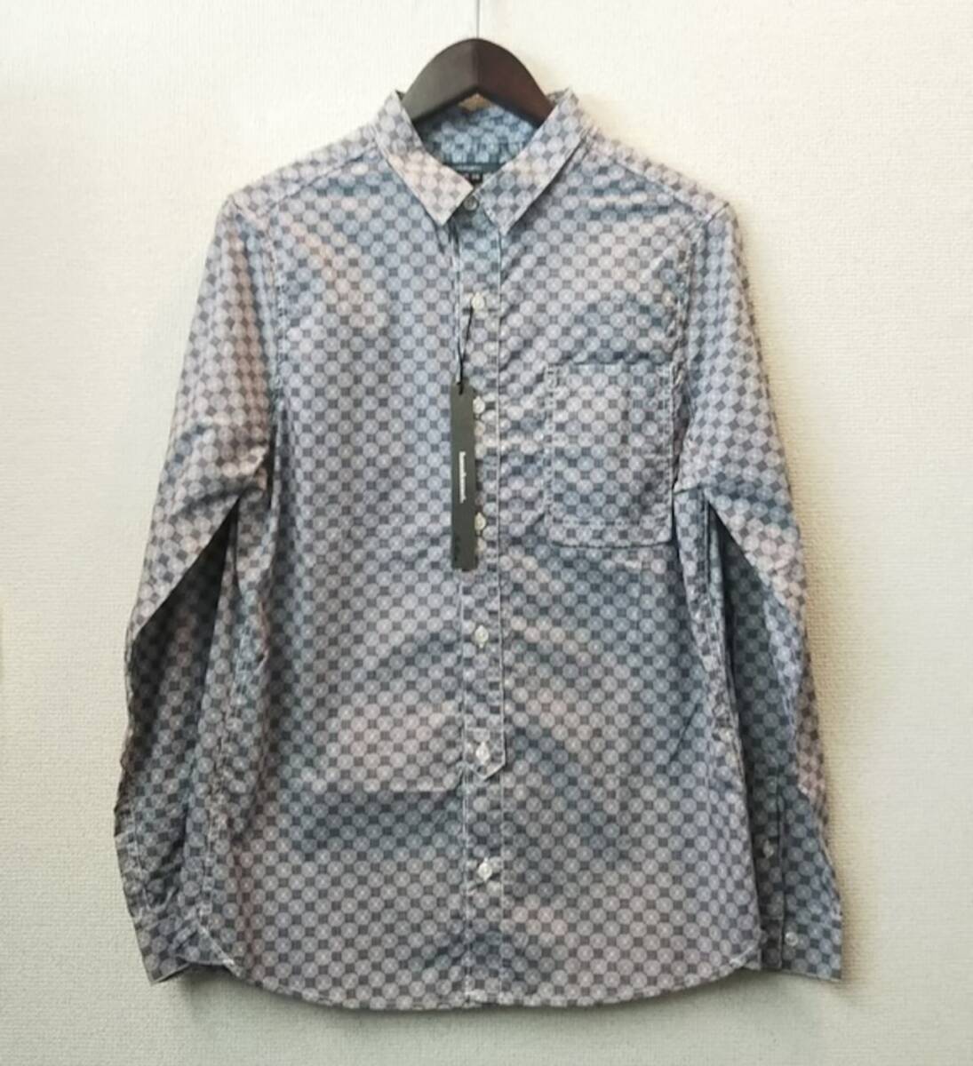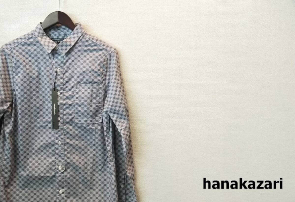 ラスト出品!即決大処分!定価9790円 新品 hanakazari(ハナカザリ) 総柄デザイン長袖シャツ (ネイビー系)40(L)