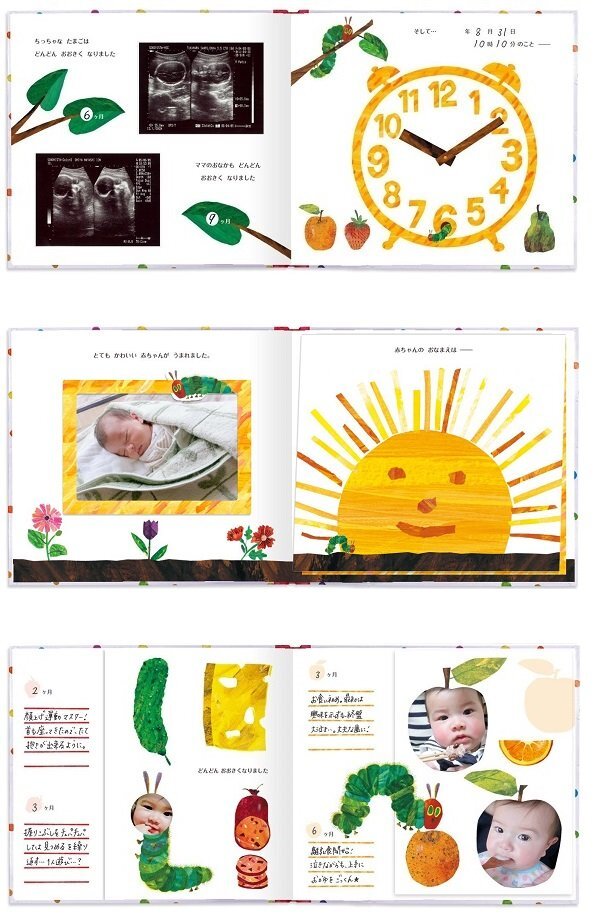 ●はらぺこあおむしのストーリーに合わせて写真を貼っていくと絵本のようなアルバムが完成します。 はらぺこあおむし×わが子のWキャストの楽しい仕掛け絵本の内容になっています。 ●エコー写真から貼ることができ、写真13枚の成長記録がメッセージとともに残せる「仕掛け絵本アルバム」です。楽しくメッセージも書けるので、読み聞かせもできます。 ●出産お祝いから1歳の誕生日のプレゼントに好適品です。 |
