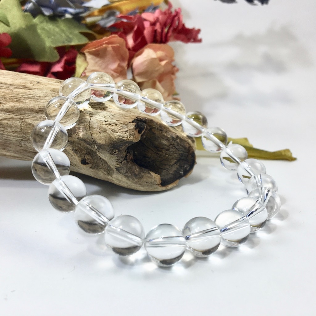 こちらは、水晶の10mm玉を使用したパワーストーンブレスレットです。シンプルなデザインですのでどんなコーディネートとも合わせ易いブレスレットです。サイズは内径約17cmです。(サイズ変更の場合は取引ナビにてご連絡をお願いします。) 数に限りがございますので気になる方はお早めにどうぞ。