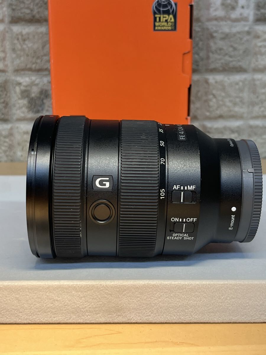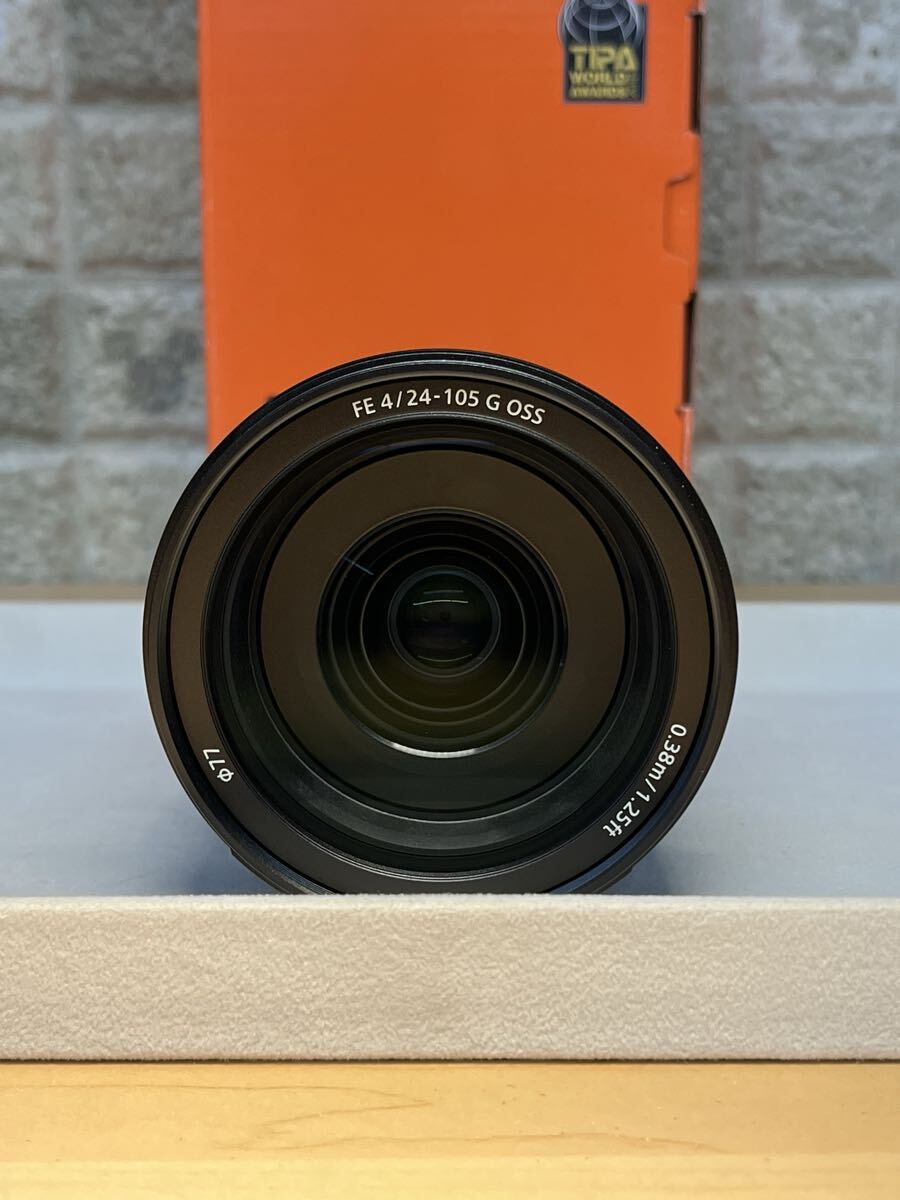ソニーのEマウント用Gレンズ「FE 24-105mm F4 G OSS (SEL24105G)」です。風景からポートレートまで幅広く使える万能ズームとして非常に人気の高い「神レンズ」です。